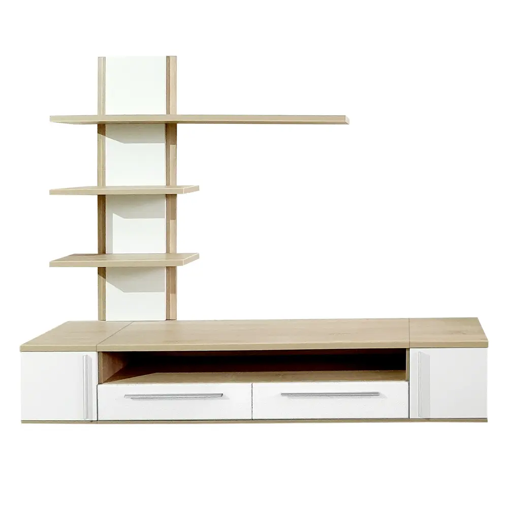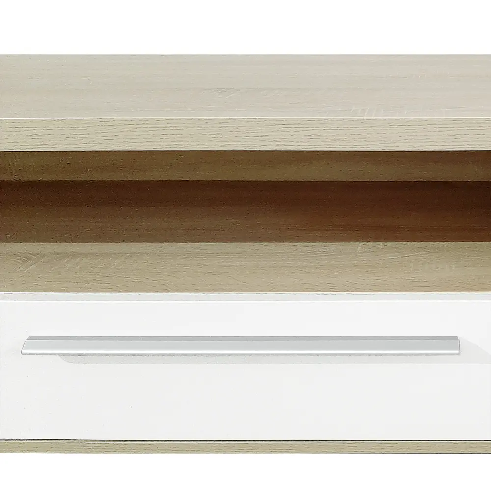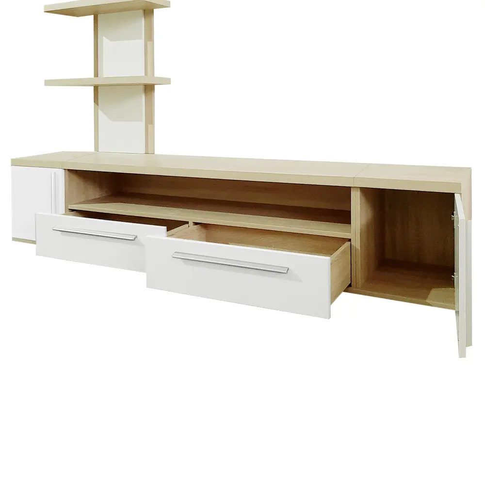 Livingul Bilbao, se inscrie in modelele modulare , moderne, aflate in tendintele actuale. Lucrata din pal melaminat de 18 mm, nuanta predominanta este sonoma imbinata cu alb la fronturi. La blat s-a folosit pal dublat pentru o rezistenta mai buna.