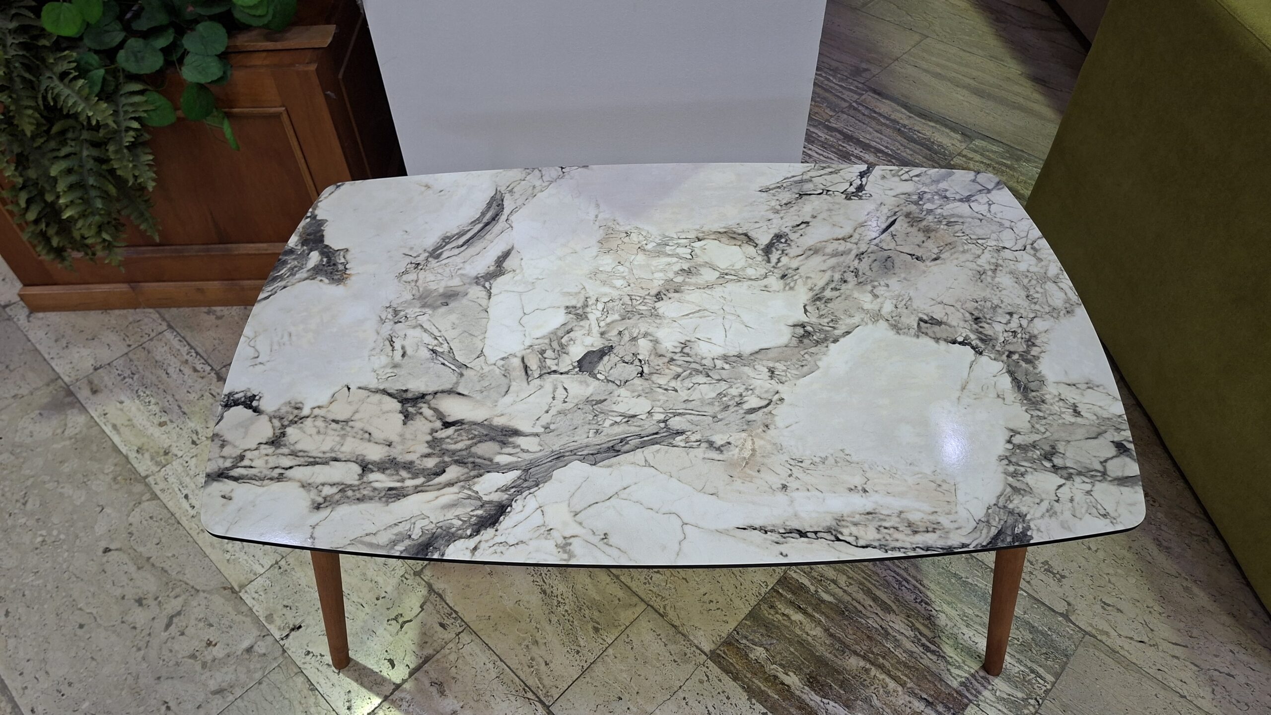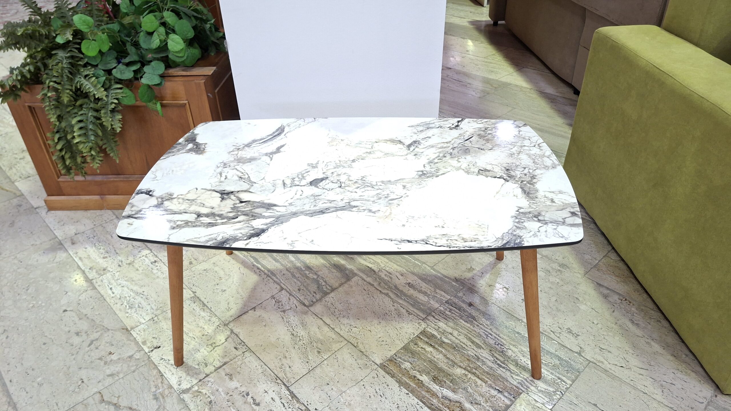 Masuta este realizata in constructie fixa, din PAL melaminat cu picioare din lemn.