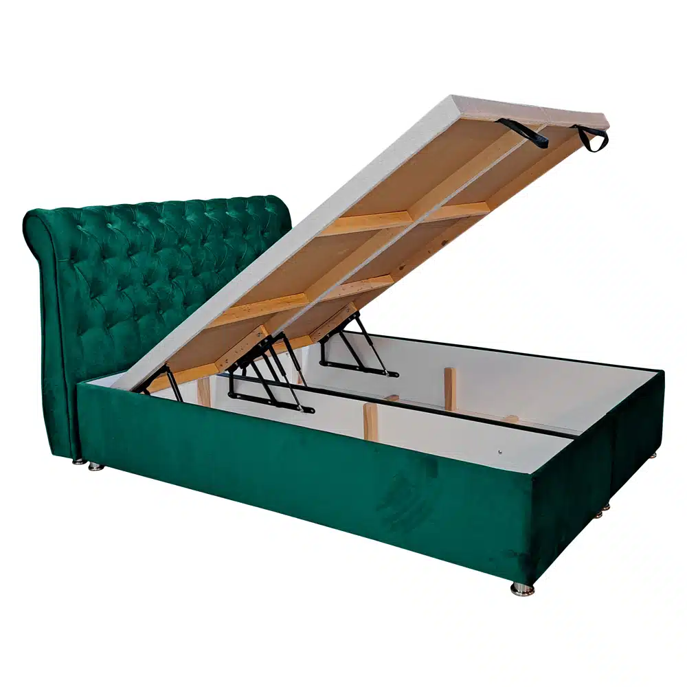 Pat CHESTER tapitat cu lada pentru depozitare 140 x 200 cm