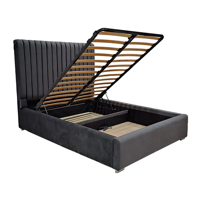 Patul MIHA va deveni tovarăşul dvs. preferat atunci când adormiţi şi vă treziţi într-o altă zi frumoasă. Confortul patului vă garantează zâmbetul pe buze în fiecare dimineaţă. Tăblia matlasată protejează patul de curent, dar oferă şi suport pentru vizualizarea confortabilă a televizorului sau pentru citirea unei cărţi preferate. Cadrul decorativ din faţă din oţel inoxidabil îl face şi elegant. Datorită designului gri închis, îl puteţi încorpora cu uşurinţă într-un dormitor deja mobilat. MIHA oferă, de asemenea, suficient spaţiu de depozitare. Patul este furnizat cu grilaj din lamele,