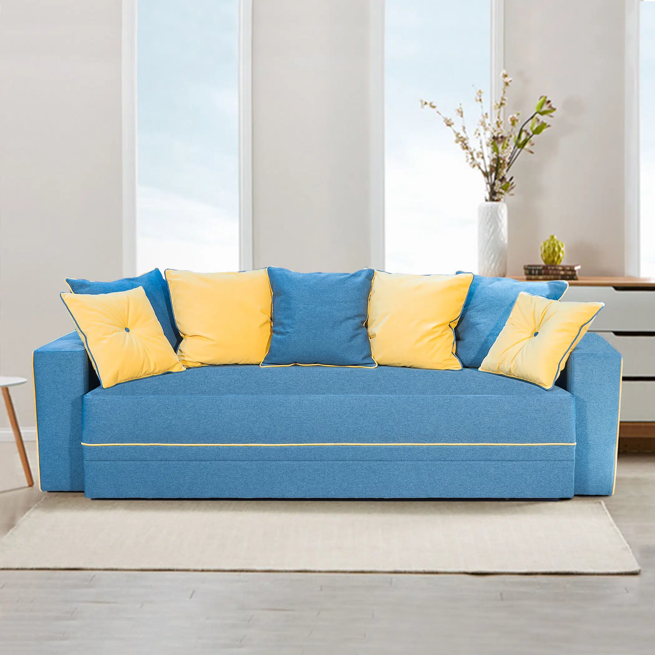 Canapea NOVA 3/4/5 – AT/FT/BT: de departe poate cea mai cunoscută și apreciată gamă de canapele din portofoliul Elvila, în primul rând datorită confortului. Prezintă un mecanism de extindere potrivit utilizării frecvente, nefiind nevoie decât de ridicarea panoului frontal la 45 grade, tragerea înspre tine până la terminarea căii de rulare, readucerea în poziţie orizontală şi rabatarea spătarului înspre şezut, exact ca cea de mai sus. Este extensibila, de 3 locuri, rezistentă și vine echipată cu multe perne. De la minim 3 până la 7 perne, în funcție de model. Produsul este disponibil în portofoliul nostru pe multiple culori de tapiţerii și 3 forme diferite ale brațelor. Prezintă și ladă de depozitare suficient de încăpătoare pentru pături, lenjerii și perne de rezervă.