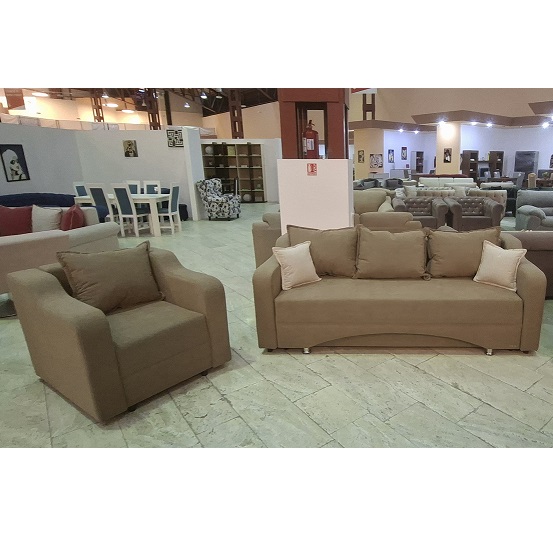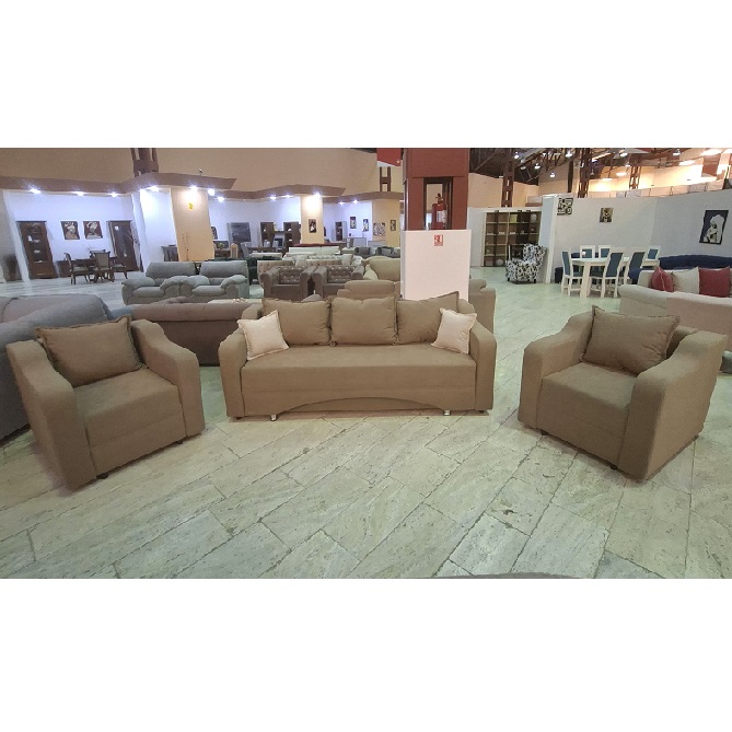 Setul este compus dintr-o canapea extensibila si doua fotolii fixe.